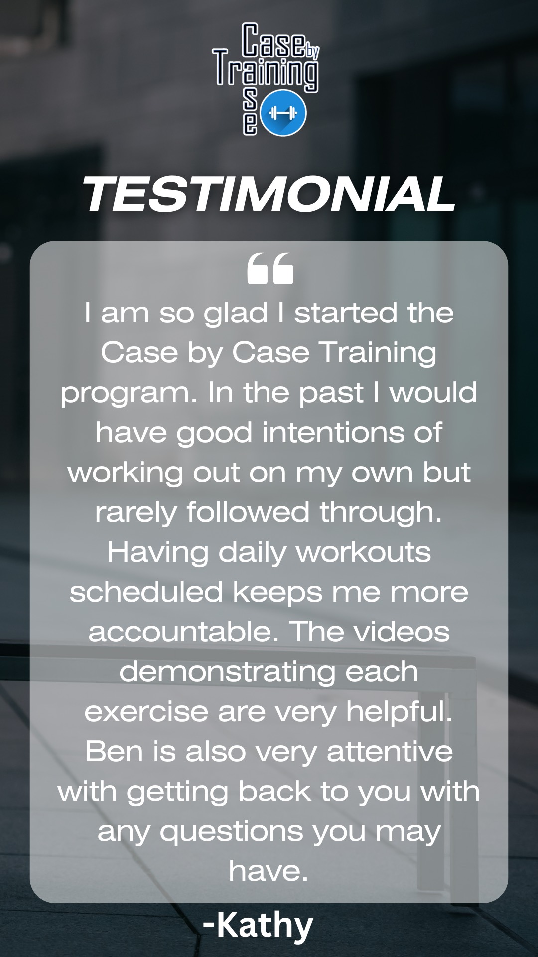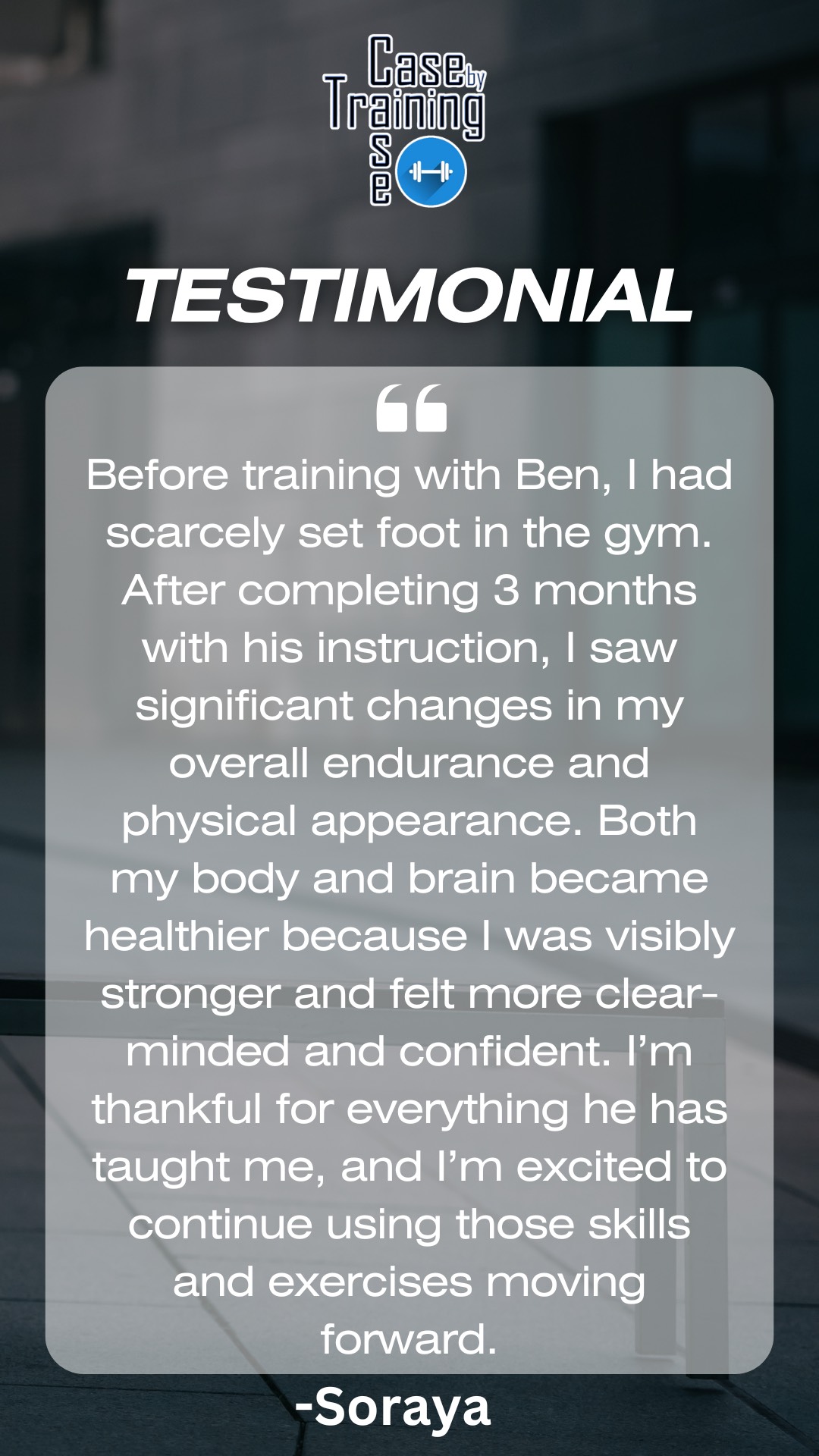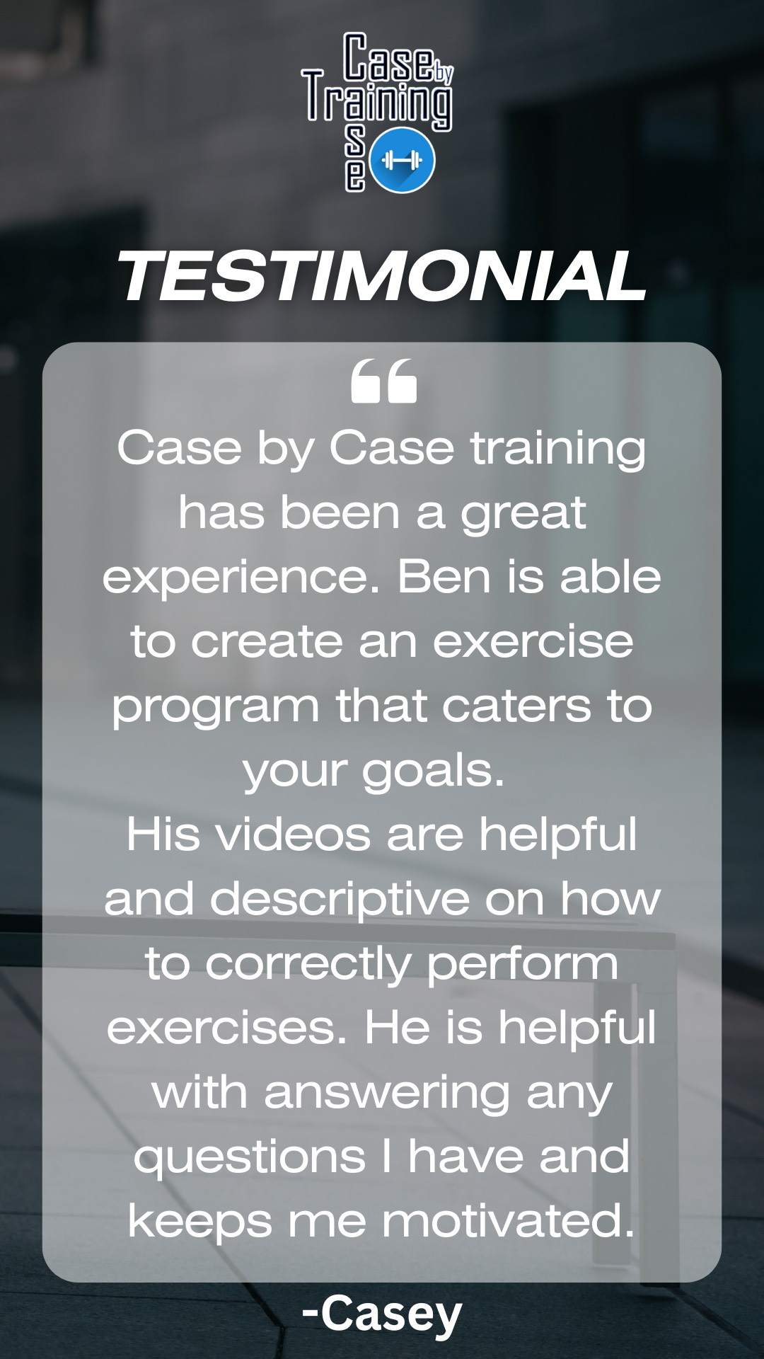 I'm the founder and owner of Case by Case Training. I have almost a decade of experience as a professional trainer/coach. In that time, I've learned several important things that have shaped my approach to fitness and overall health...